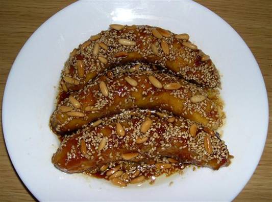 4. Chauffer l’huile dans un wok ou une poêle. Trempez-les bananes dans la pâte, puis, déposez-les dans l’huile, par petite quantité. Faites-les bien dorer. Retirez du Wok et égouttez sur du papier absorbant.