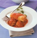 3. Séparer les feuilles de chou sans les casser. Placer un peu de farce sur chaque feuille de chou, refermer en forme de cigare puis les attacher avec un cure-dent
