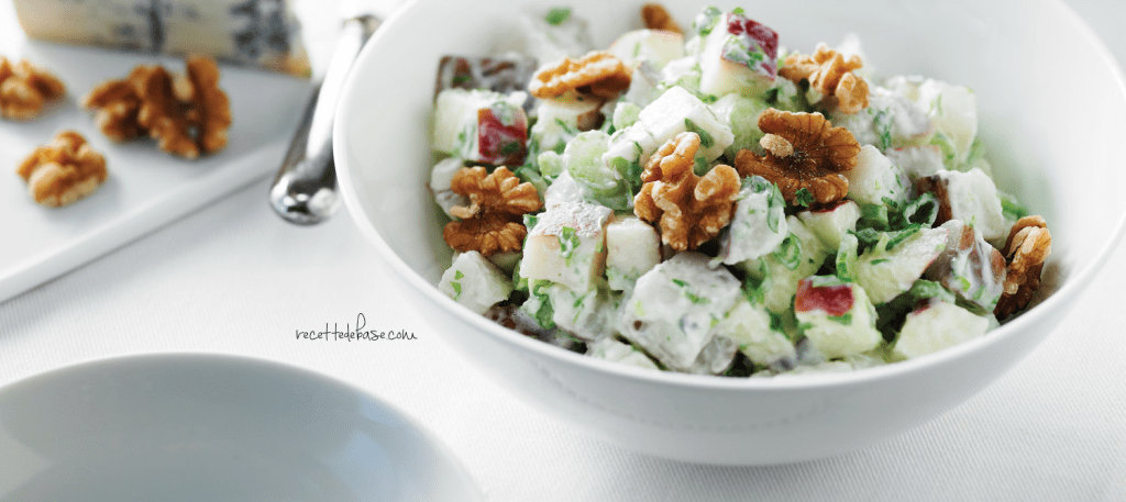 La recette originale comprenait seulement des dés de pommes, du céleri et de la mayonnaise. Les noix ont été ajoutées plus tard.