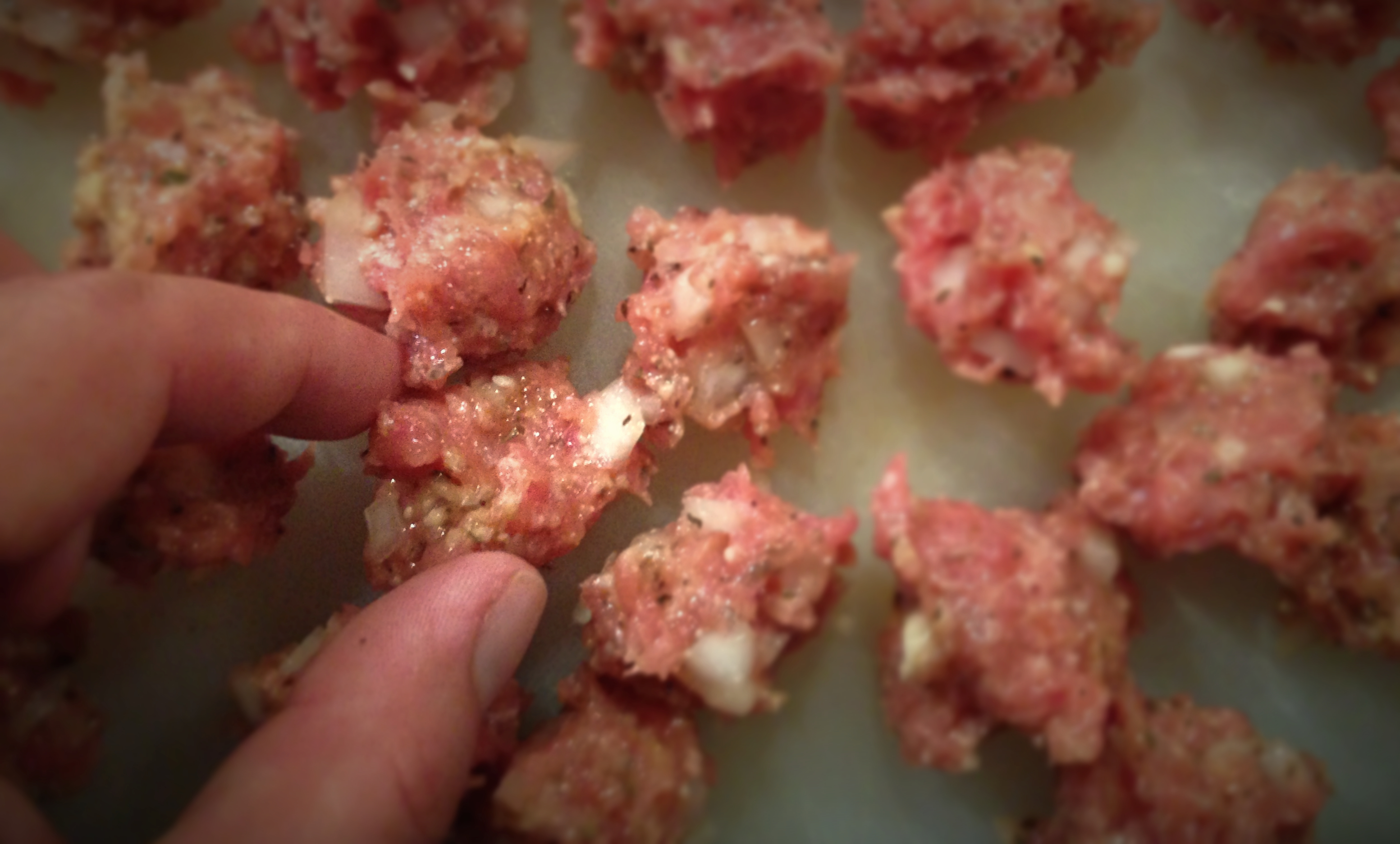 - Pour les boulettes, mélanger tous les ingrédients et former en petites boules de la grosseur du pouce. Placer sur une plaque à biscuits recouverte d’un papier parchemin et réfrigérer, pour qu’elles se tiennent bien