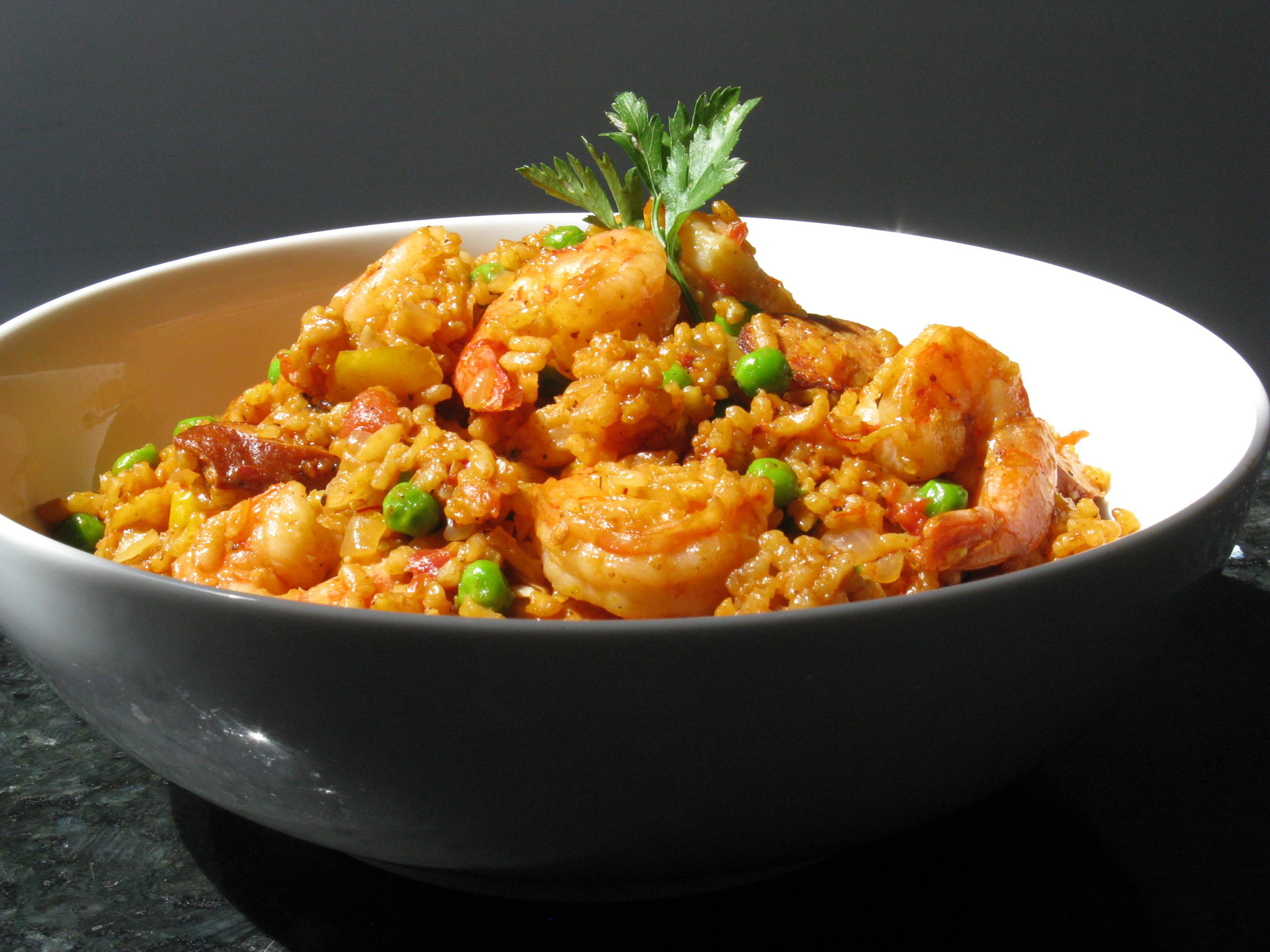 Je vous offre donc ici une recette passe-partout, de base, que vous pouvez modifier comme bon vous semble. Notez toutefois qu’une paella doit absolument contenir du riz à grains longs, du safran (de bonne qualité) et de l’huile d’olive. Traditionnellement, elle est préparée et cuite dans une grande casserole, sur un feu de braises. Elle ne doit pas être brassée pendant la cuisson pour qu’une croûte se forme en-dessous – c’est la meilleure partie de la paella!