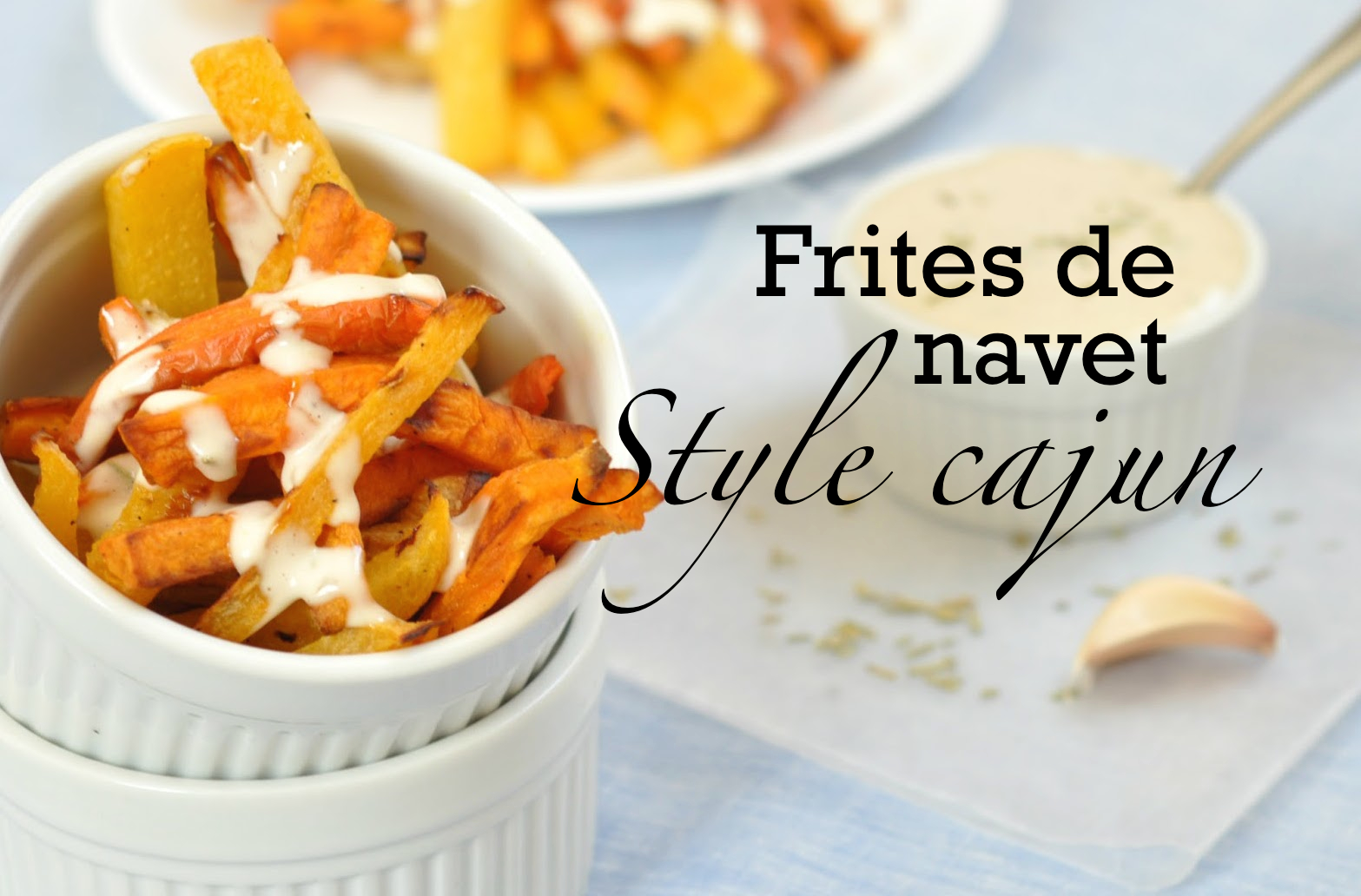 - Dans un grand bol, mélanger les frites de navet, l’huile d’olive, les épices cajun et les herbes de Provence