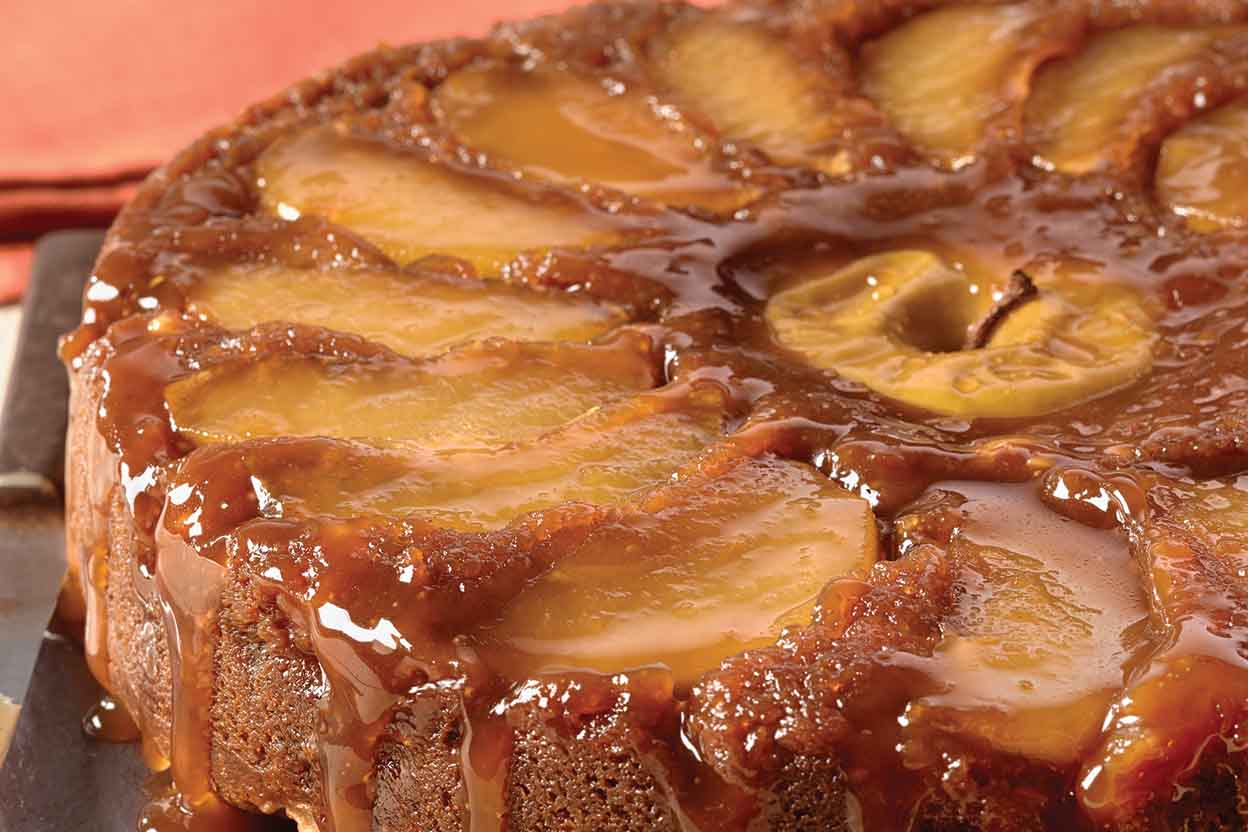 Une fois cuit, ce gâteau ressemble presqu’à une tarte. Il est plutôt mince mais sa combinaison de sucre et de beurre sauront combler vos attentes avec une petite portion. Vous pouvez utiliser 2 sortes de pommes pour une alternance de goûts et de textures, plus acides (Paula Red, Granny Smith) et plus sucrées (Cortland – qui garde sa forme à la cuisson, Empire)