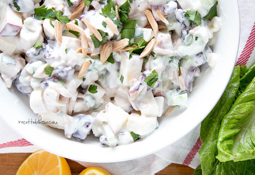 J’aime la salade Waldorf traditionnelle, parce qu’il ne s’agit pas d’une banale salade composée de laitue et de quelques légumes. Vous pouvez voir ma recette ici.