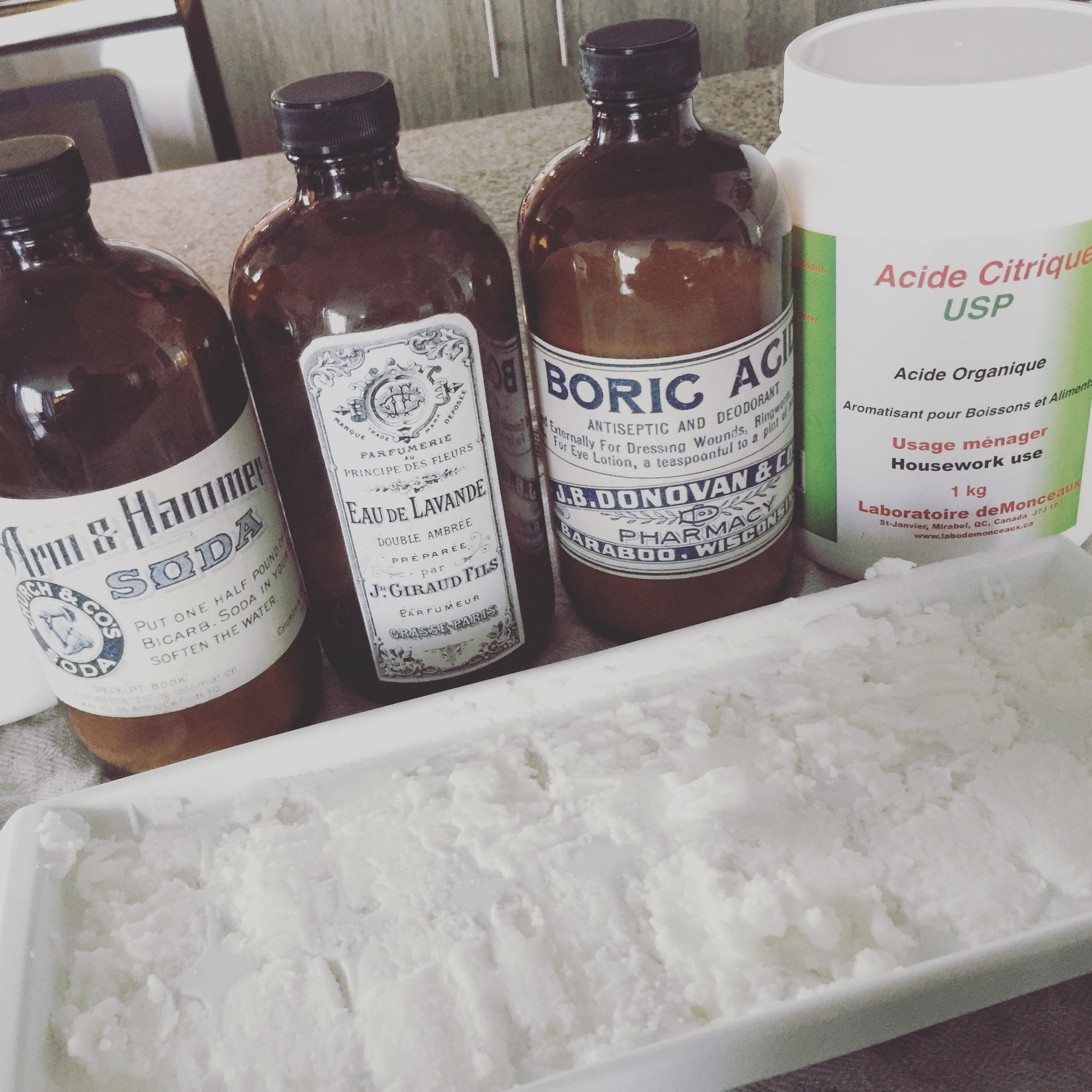- 1 ½ tasse (375 ml) d’acide borique (Borax) que l’on trouve au rayon des produits nettoyants des pharmacies ou boutiques d’aliments naturels