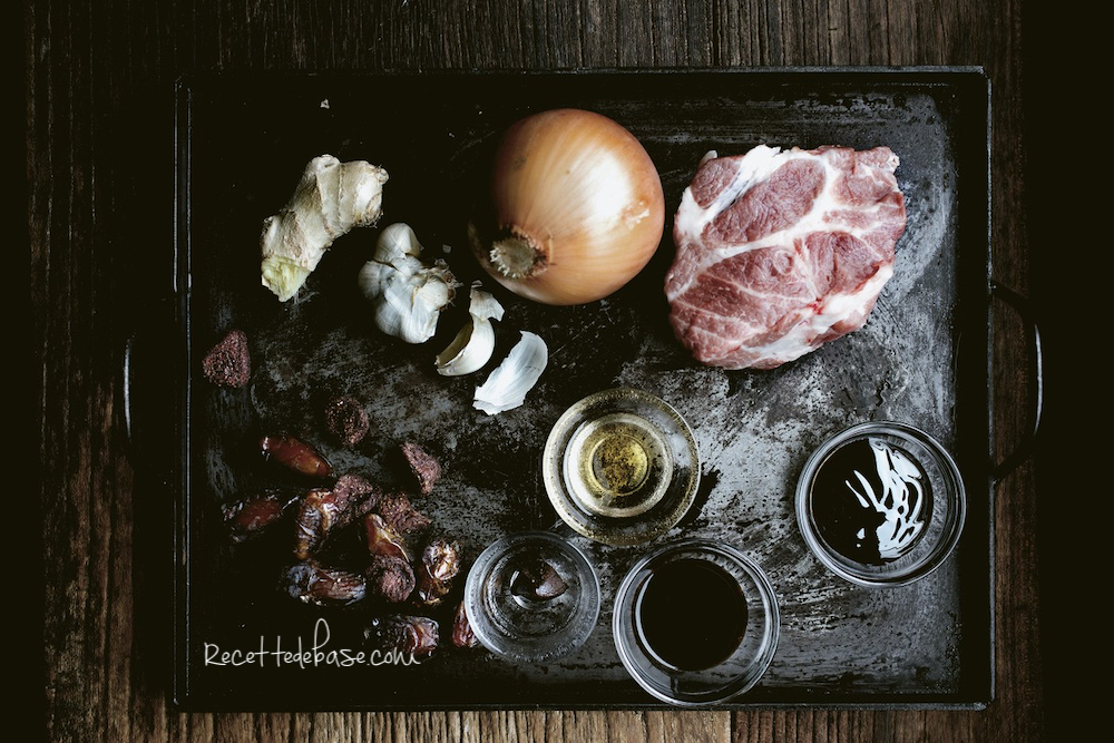 - Tailler l’épaule de porc en lanières de 5 centimètres. Garder le gras – c’est l’un des secrets de la saveur de cette recette.