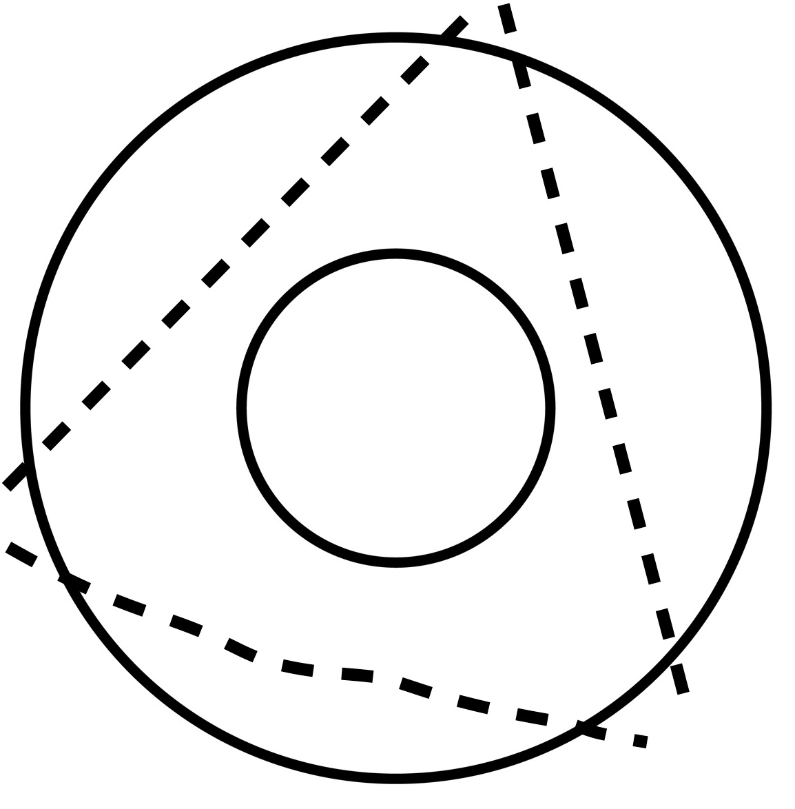 Pour un beigne plus texturé, pratiquez 3 légères incisions en forme de triangle à la surface de la pâte avant de les frire, comme le montrent ces lignes pointillées sur ce dessin: